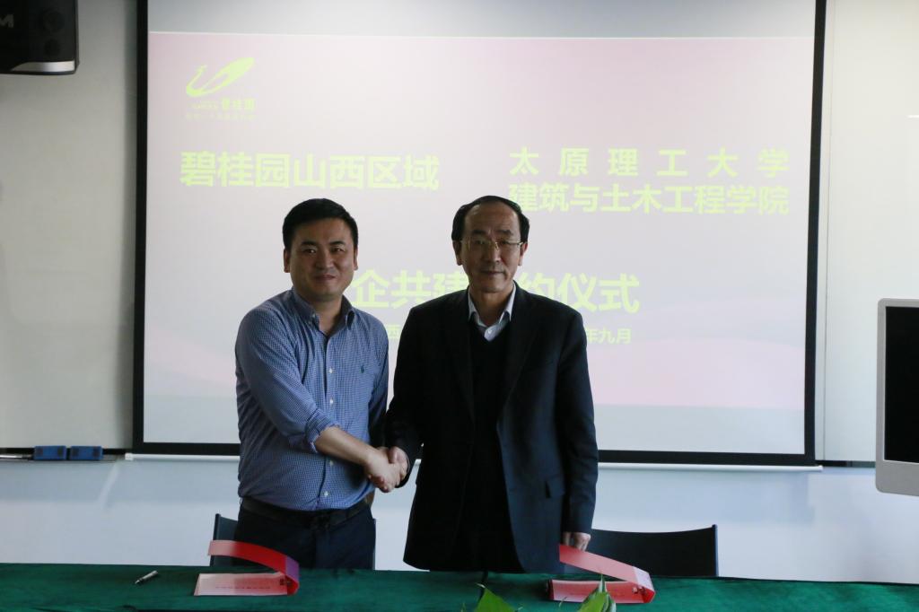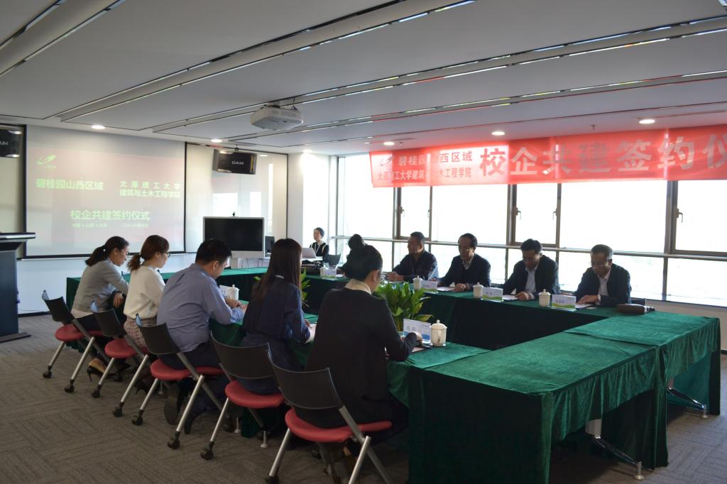 雷宏刚院长与碧桂园山西区域执行总裁赵建军分别代表院企双方签订《校企共建合作协议》。签约仪式上,碧桂园山西区域人力资源经理就碧桂园人才培养计划进行了介绍,建工学院优秀校友进行了成长经历分享。签约仪式后学院领导还与就职于碧桂园的学院毕业生进行了座谈。