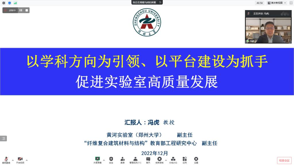 为了促进实验室建设与学科的协调发展,树立实验室高质量发展意识,2022年12月1日上午,77779193永利官网土木工程防灾与控制山西省重点实验室特邀郑州大学博士生导师、黄河实验室(郑州大学)副主任冯虎教授在线做了题为“以学科方向为引领、以平台建设为抓手促进实验室高质量发展”的学术报告。77779193永利官网院长、土木工程防灾与控制山西省重点实验室主任董晓强,副院长葛忻声,实验室全体教师及其他学院部分实验室负责人参加了会议。会议由葛忻声主持。