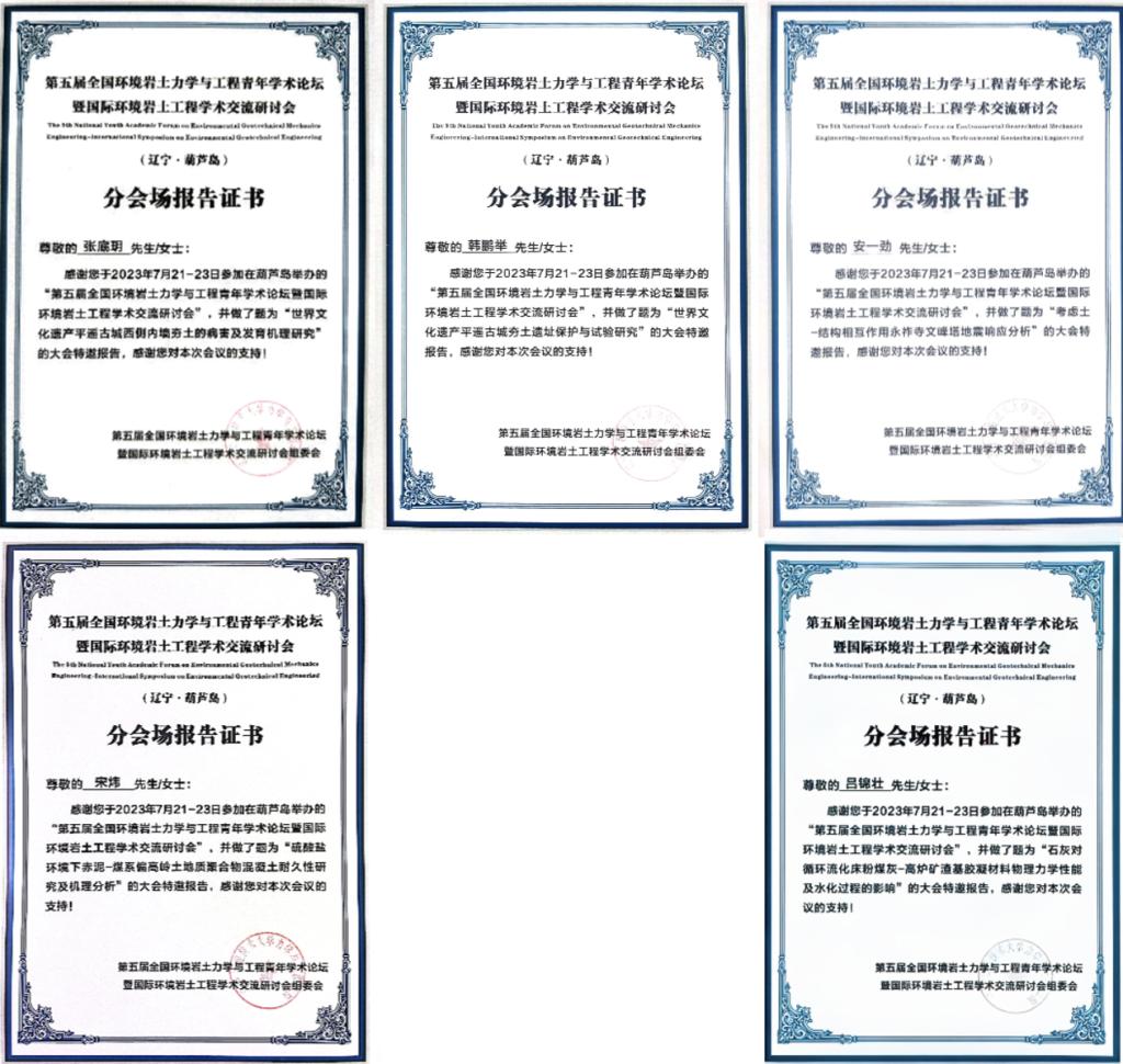 2023年7月22日至23日“第五届全国环境岩土力学与工程青年学术论坛暨国际环境岩土工程学术交流研讨会”在辽宁省葫芦岛市召开,会议由辽宁工程技术大学承办。77779193永利官网韩鹏举教授一行五人参加了本次会议。