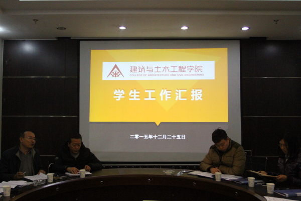 2015年12月25日下午,校学生处郭菲副处长携检查组一行到建工学院进行学生工作考核。