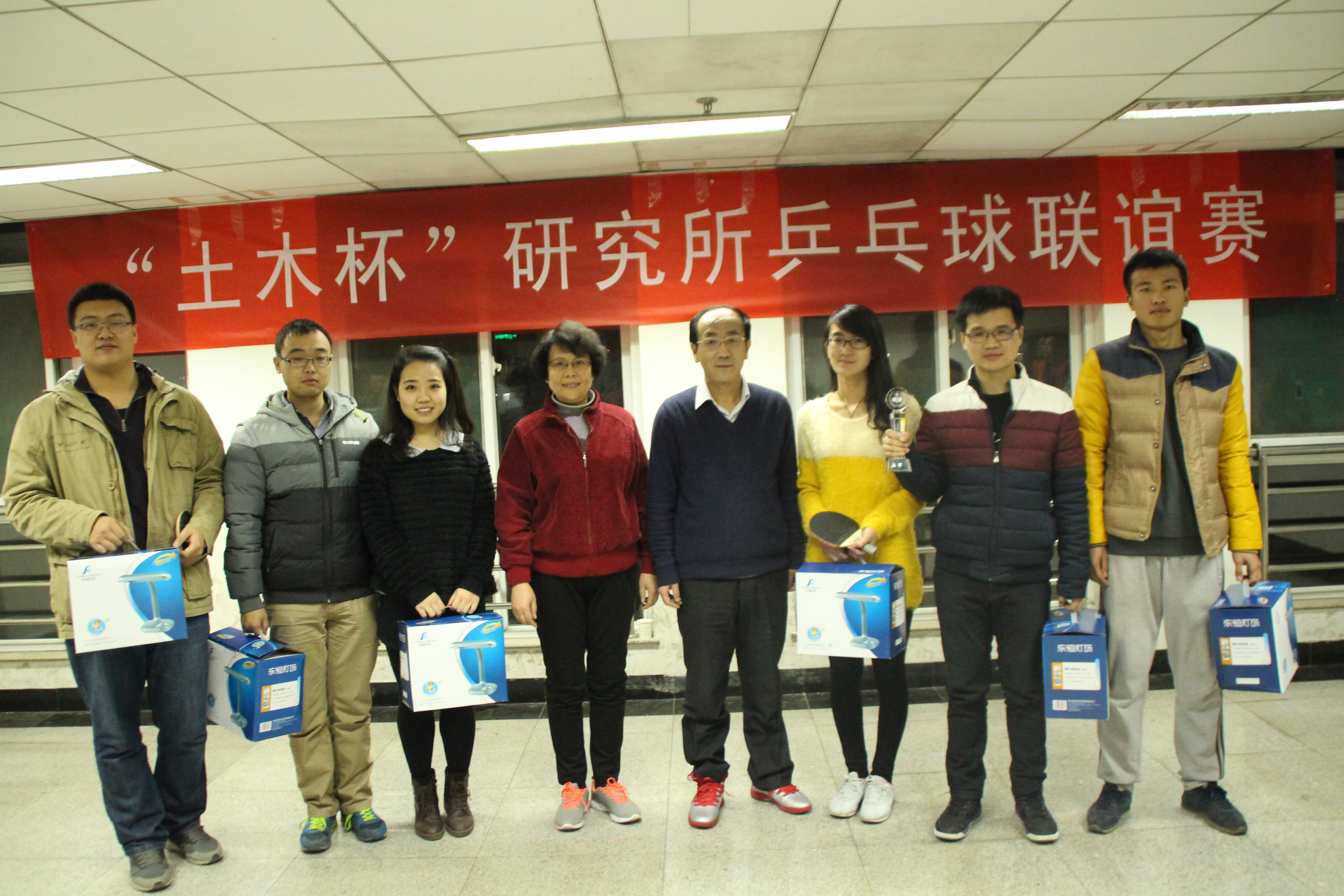 比赛采取团体赛的形式,分为教师组和学生组.比赛持续了将近6个小时,由学院党委书记白晓红老师和院长雷宏刚老师的单打比赛更是将比赛推向了高潮,掌声和欢呼声连绵不绝。最终教师组钢结构与空间结构研究所获得冠军,岩土与地下工程研究所获得亚军,新材料与建筑节能研究所获得季军;学生组岩土与地下工程研究所获得冠军,钢结构与空间结构研究所获得亚军,岩土工程与防灾研究所和地基与基础工程研究所联合获得季军。