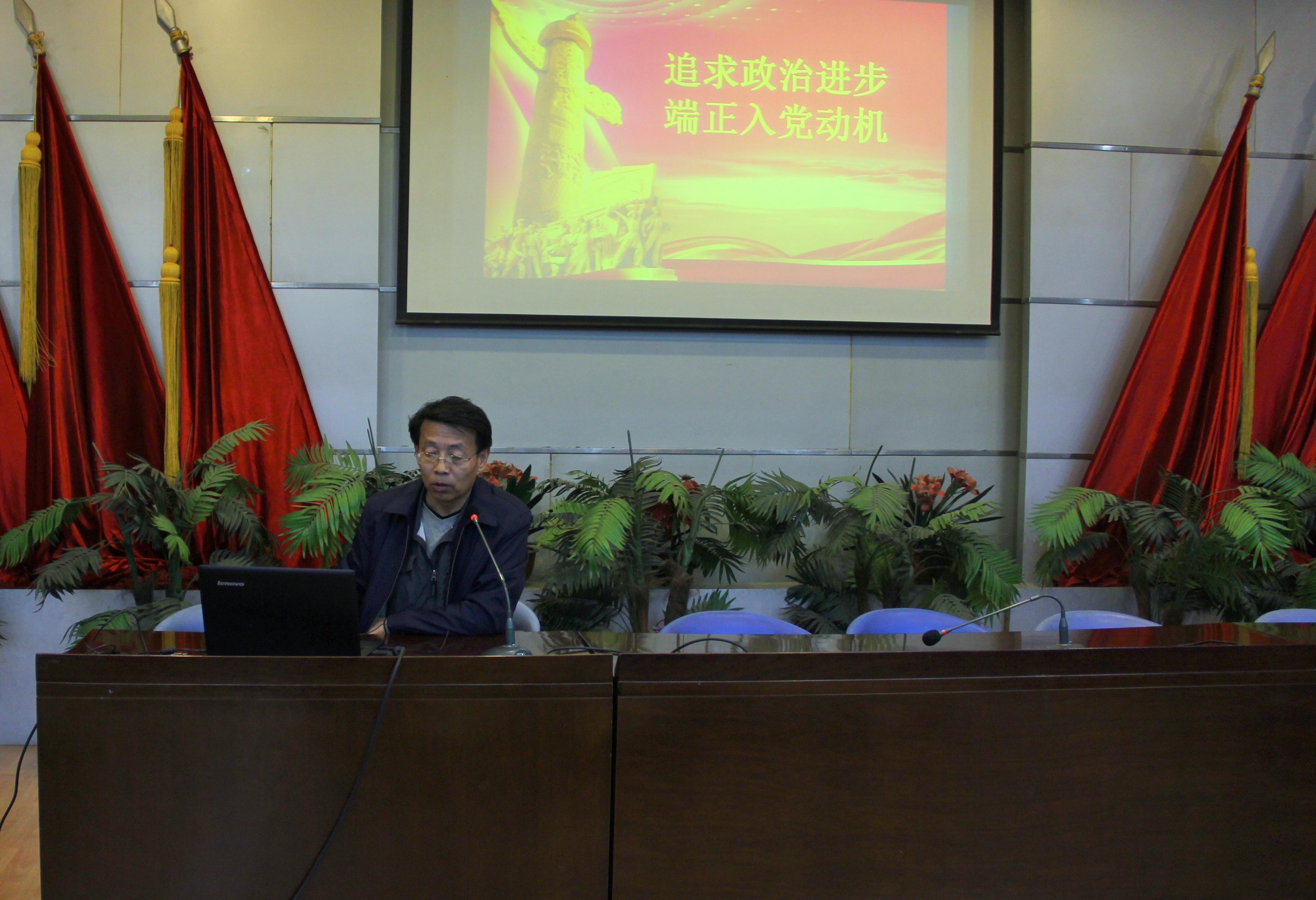 开班仪式后,吕兴宇老师做了此次培训的第一讲—《追求政治进步,端正入党动机》。他首先分析了现今的入党形势,通报了学校的方针政策的调整,提出了国家和党组织在新的历史时期对党员的新要求。他着重分析了入党积极分子的“五重身份,六大节点”,希望学员们从现在开始就以党员的标准要求自己,心怀若谷,把党课培训当作一次接受组织考验,以实际行动来接受党组织的考验。
