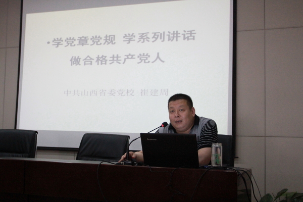 2016年6月2日下午,建工学院在博学馆A座五层会议室举办讲座。中共山西省委党校党史党建教研部副主任崔建周为全体党员做了题为《学党章党规,学系列讲话,做合格共产党人》的讲座,讲座由党委副书记袁毅刚主持。