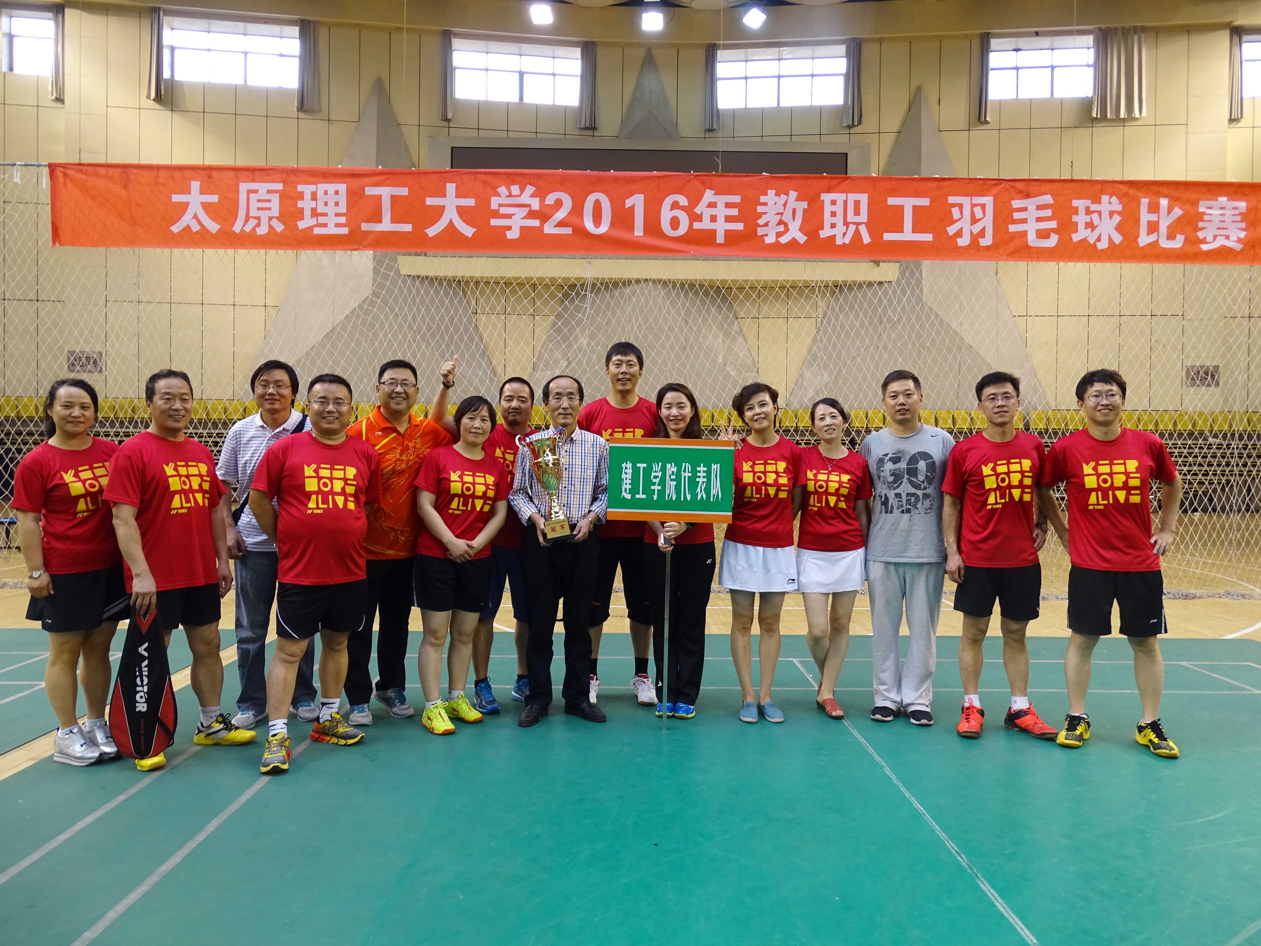 在骄阳似火的7月,由校工会主办的2016年太原理工大学教职工羽毛球团体比赛在迎西校区体育馆精彩上演。羽毛球比赛在全校教职工中受到广泛关注和热烈欢迎,此次比赛吸引了26个分工会200余位教职工的积极参与。