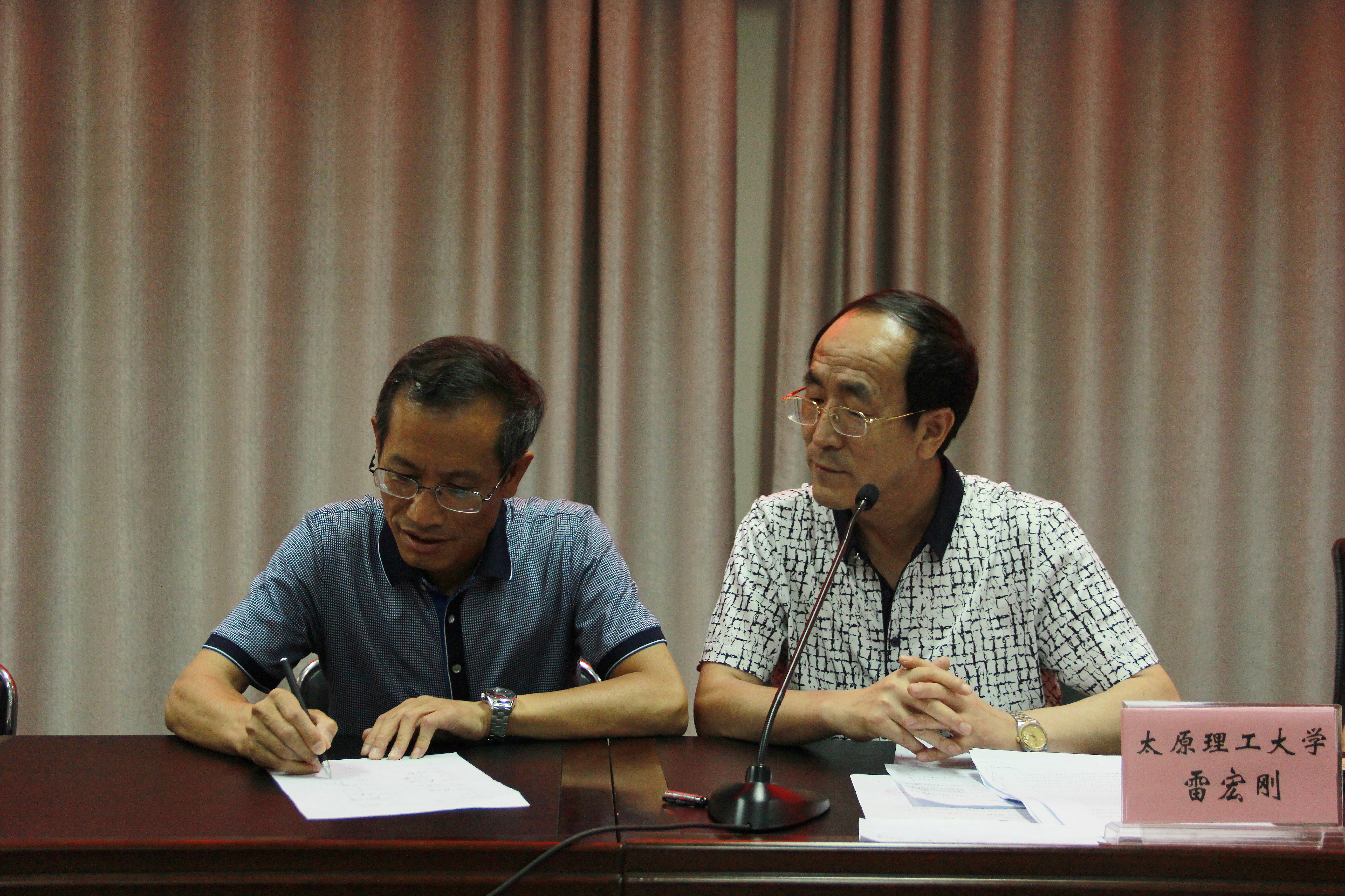 郝增元宣布山西省土木工程专业联盟成立,并宣读联盟协议。郝增元与雷宏刚为专业联盟揭牌。之后联盟各单位代表有序上台签订协议。