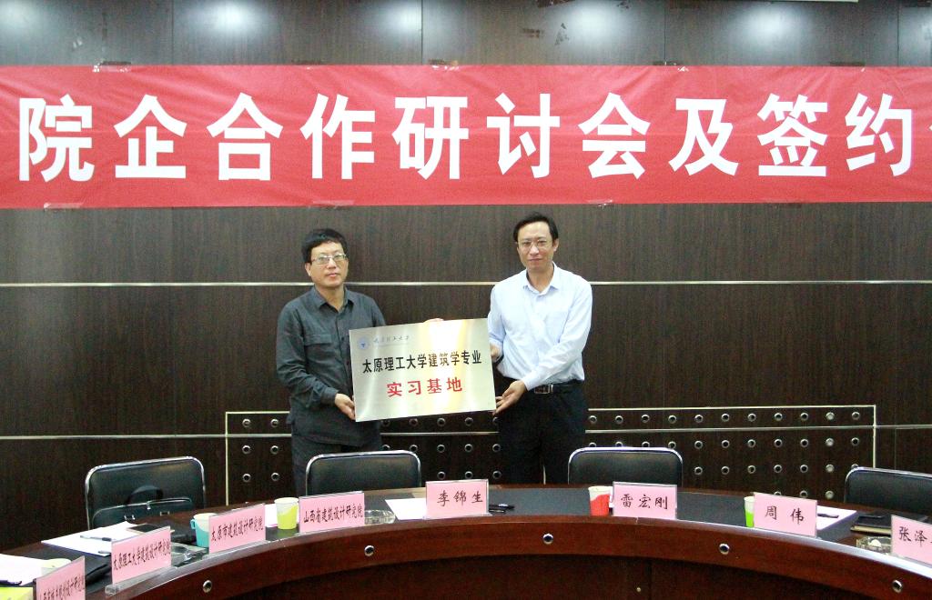 院长雷宏刚分别与山西省建筑设计研究院、太原市建筑设计研究院等14家企业签订了院企合作协议;院党委书记周伟、院长雷宏刚为14个专业实习基地授牌;14家企业为产学研培育基地授牌仪式。院长雷宏刚宣布成立太原理工大学建筑与城乡规划研究中心,并为主任李锦生、常务副主任王金平颁发聘书。
