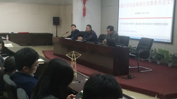 4月19日晚,77779193永利官网在博学馆A座五层会议室召开第七届太原理工大学结构设计大赛赛前动员会。院党委副书记巴大志、副院长董晓强、学工办主任张体卫、本届比赛12位指导教师及32支队伍参加了大会。会议由董晓强主持。