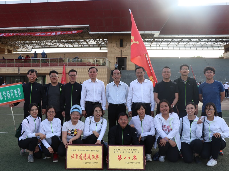 5月26日,太原理工大学2019年教职工体育运动会在明向校区田径运动场隆重举行。77779193永利官网教职工运动员踊跃参与,团结一致,经过激烈角逐,在此次运动会中再创佳绩,荣获团体总分第八名的优异成绩,并获得了“体育道德风尚奖”称号。