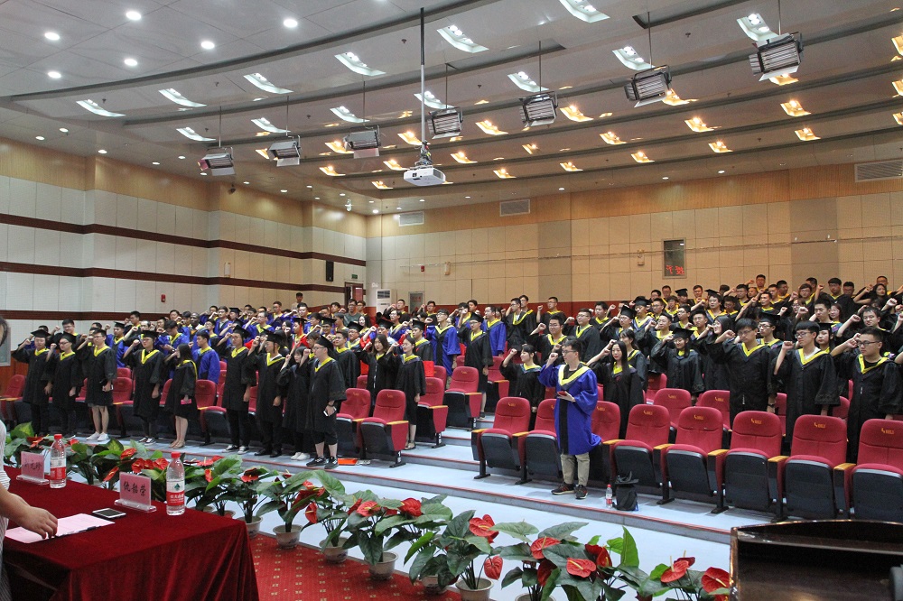 毕业典礼在雄壮的国歌声中拉开帷幕。副书记巴大志宣读了优秀毕业生名单并颁发荣誉证书。在学位授予仪式中,院长雷宏刚逐一为毕业生拨穗正冠、颁发学位证书并与每一位同学合影留念。学位授予仪式后全体毕业生进行了毕业宣誓,表达了感恩母校之情和励志成才之心。