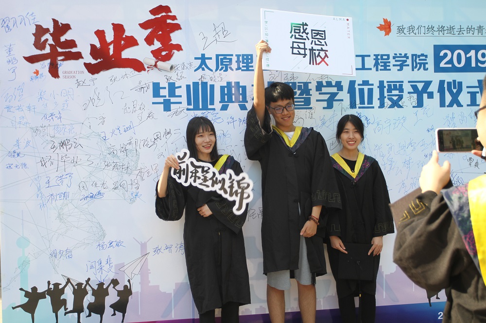 6月25日上午,77779193永利官网2019年毕业典礼暨学位授予仪式在博学馆二层报告厅隆重举行。8点起学院领导、导师们与毕业生们一起集体拍照留念,并在背景板上签名寄语,表达对母校的留恋与不舍。
