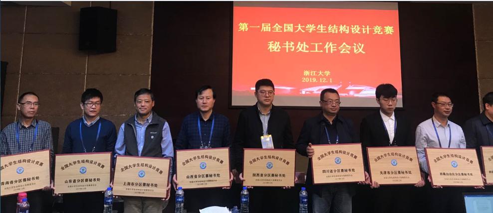 会上,全国大学生结构设计竞赛委员会委员兼秘书长陆国栋教授、专家委员会主任金伟良教授、浙江大学本科生院院长张光新教授分别为31个省市自治区颁发了象征荣誉和使命责任的分区赛秘书处牌匾。董晓强代表山西省赛区接受了牌匾。