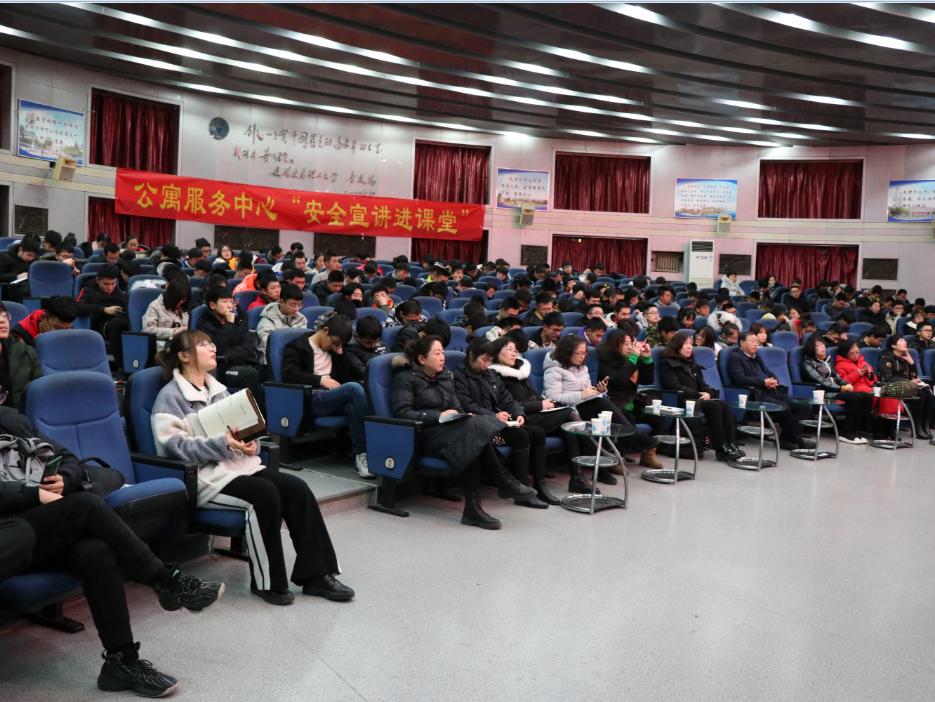 2019年12月30日,77779193永利官网在思贤楼三楼召开“学生公寓安全宣讲进课堂”教育大会,后勤保障处副处长、公寓服务中心主任张文基,公寓服务中心副主任、党支部书记景晓芳,副主任刘玉花等领导出席,及77779193永利官网辅导员和2019级全体学生参加。
