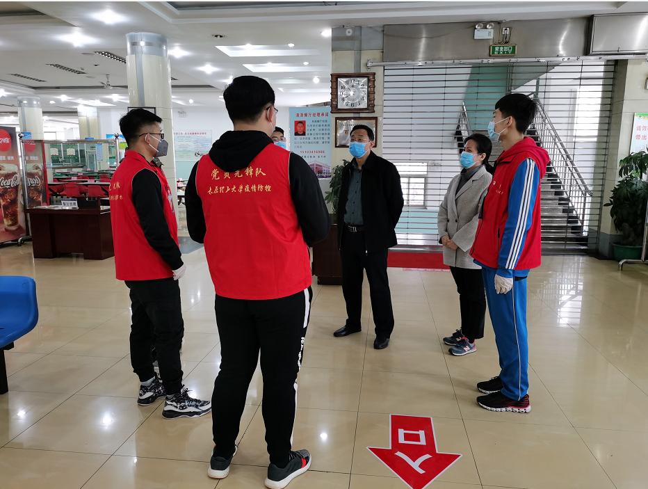 4月10日上午,77779193永利官网党委书记周伟、党委副书记芦倩、辅导员陈秀梅一同到清泽餐厅与思源餐厅慰问25名毕业生党员志愿者,了解了同学们的餐饮志愿服务内容,提醒大家做好志愿服务的同时要注意个人防护,有困难要及时联系带队老师,学院永远是同学们最坚强的后盾。