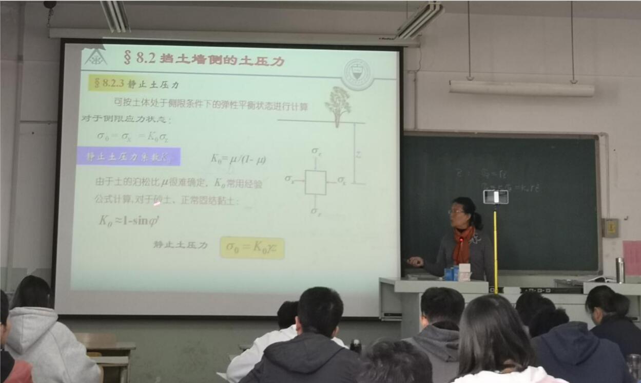 上午9:00到9:50,白晓红教授就《土力学》第八章“土压力”的内容进行了教学示范。白老师的讲解深入浅出,将抽象的理论知识活灵活现地展现出来。通过课程学习,学生们对土压力有了更深刻的认识,并可以利用土压力知识解释生活中的一些常见案例。