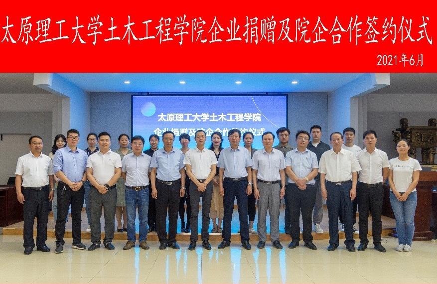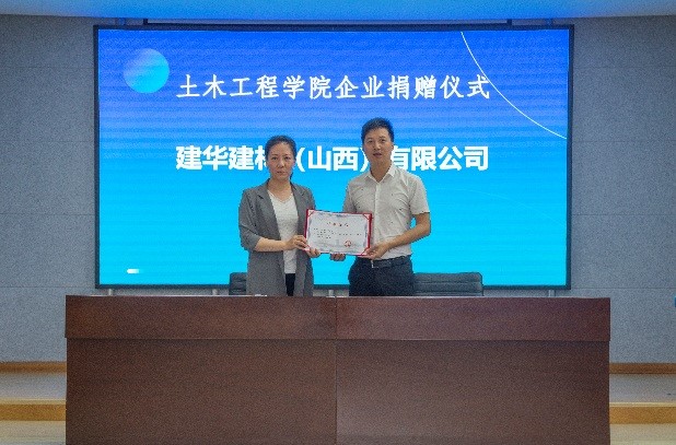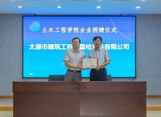 会上,董晓强与太原市建筑工程质量检测站有限公司和太原普可佳工程设计有限公司的签署了捐赠协议,并接受了总价值20万元办公设施的实物捐赠。芦倩与建华建材(山西)有限公司签署了捐赠协议,并接受了对“太原理工大学混凝土材料设计大赛”全部比赛材料的实物捐赠。