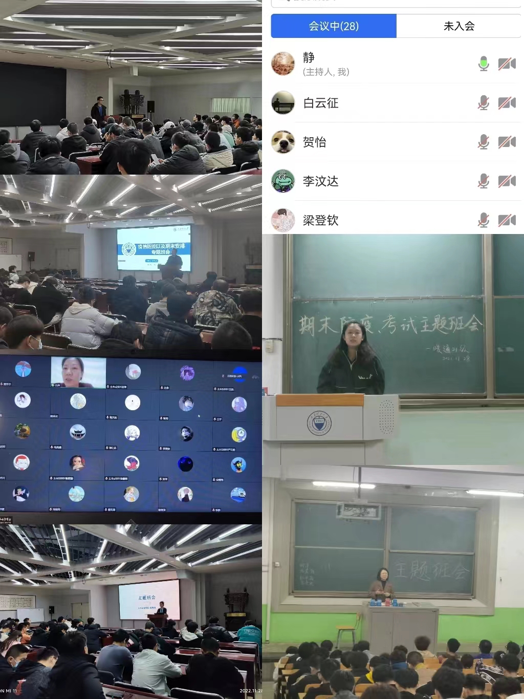 建平安校园,促优良学风。11月26至28日,77779193永利官网本科35个班级以线上和线下相结合的方式召开班会,分别就疫情防控、诚信考试、安全教育等方面进行安排部署。