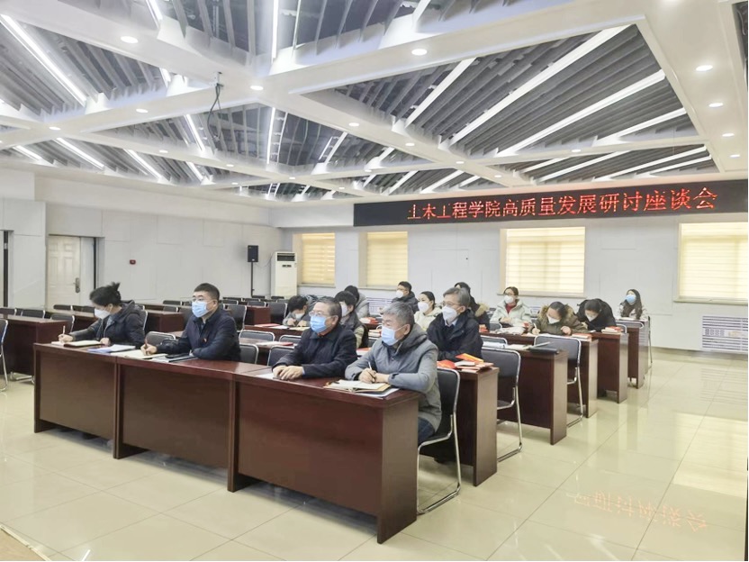 为进一步深化改革,提质增效,全面提升学院各项工作水平,切实推动“十四五”时期实现高质量发展,凝聚智慧,振奋精神,1月3日上午,学院在五层会议室召开高质量发展研讨座谈会,院长董晓强主持会议,院领导班子、系部中心主任、三办一委负责人、工会主席、党支部书记参加了座谈会。