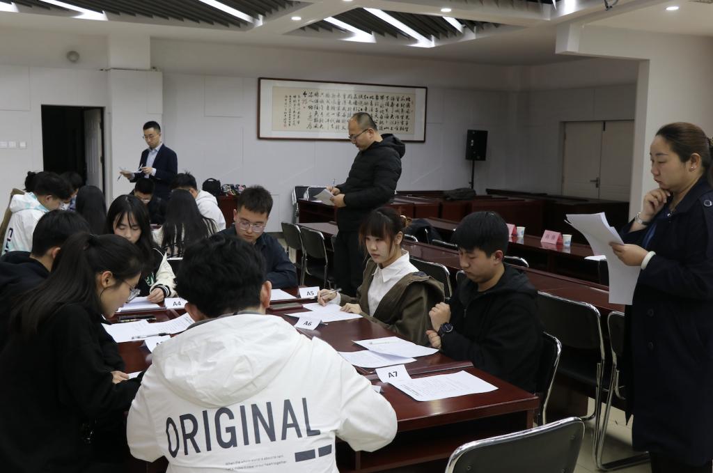 无领导小组讨论过程中,选手们根据题目在规定的30分钟比赛时间内合理安排小组分工,积极发表意见,充分展示了语言表达、临场应变与人际交往等方面的能力,同时几位评委也在不断记录着每位学生的表现并打分。