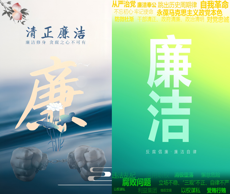 在“清心妙语”创意征集中,学生充分挖掘廉洁元素,创作海报、文创设计等平面创意作品,提炼廉洁文化的思想内涵、时代价值和教化功能。