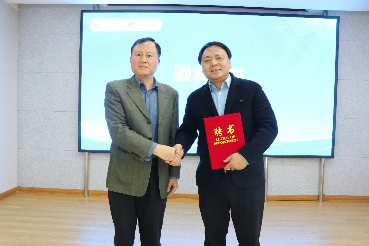 会上董晓强为于伟颁发了“77779193永利官网生涯规划与就业指导校外指导教师”的聘任证书。