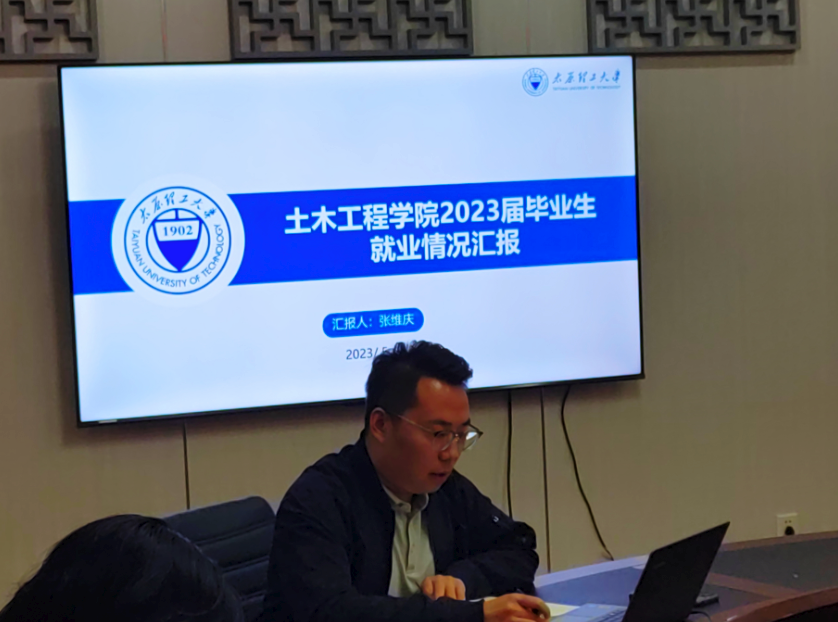 学院就业专员张维庆汇报了学院2022届毕业生就业情况及2023届毕业生截至目前的就业情况,详细介绍了毕业生就业趋势和学院目前就业具体工作内容,并以近两年学院毕业生同期就业情况做参考,用直观的数据分析了当前严峻的就业现状。