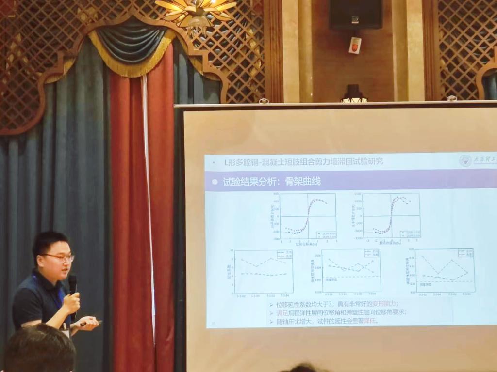 会上,王蕊教授进行了题为《圆端形钢管混凝土桥墩抗冲击性能研究》的特邀报告,汇报了课题的最新研究成果,介绍了太原理工大学组合结构团队及冲击力学试验装置的建设情况。赵晖、邢颖和王云鹤也分别进行了题为《考虑上部质量的双柱CFST桥墩抗车辆撞击力学性能研究》、《螺栓连接的装配式钢-混凝土组合梁力学性能分析》、《工形多腔钢混凝士短肢组合剪力墙滞回性能研究》的分会场报告,并与现场专家学者进行了充分的交流探讨。