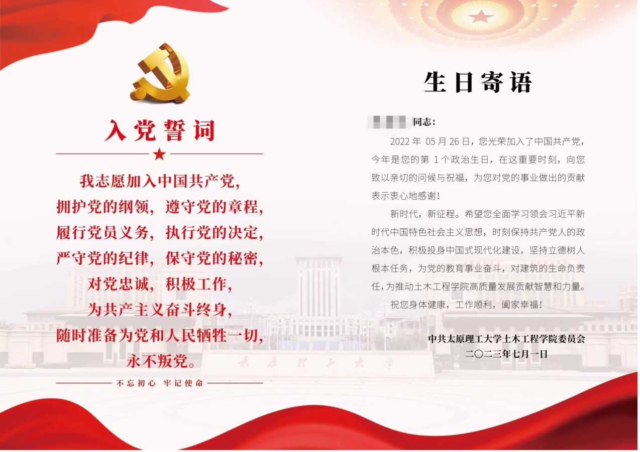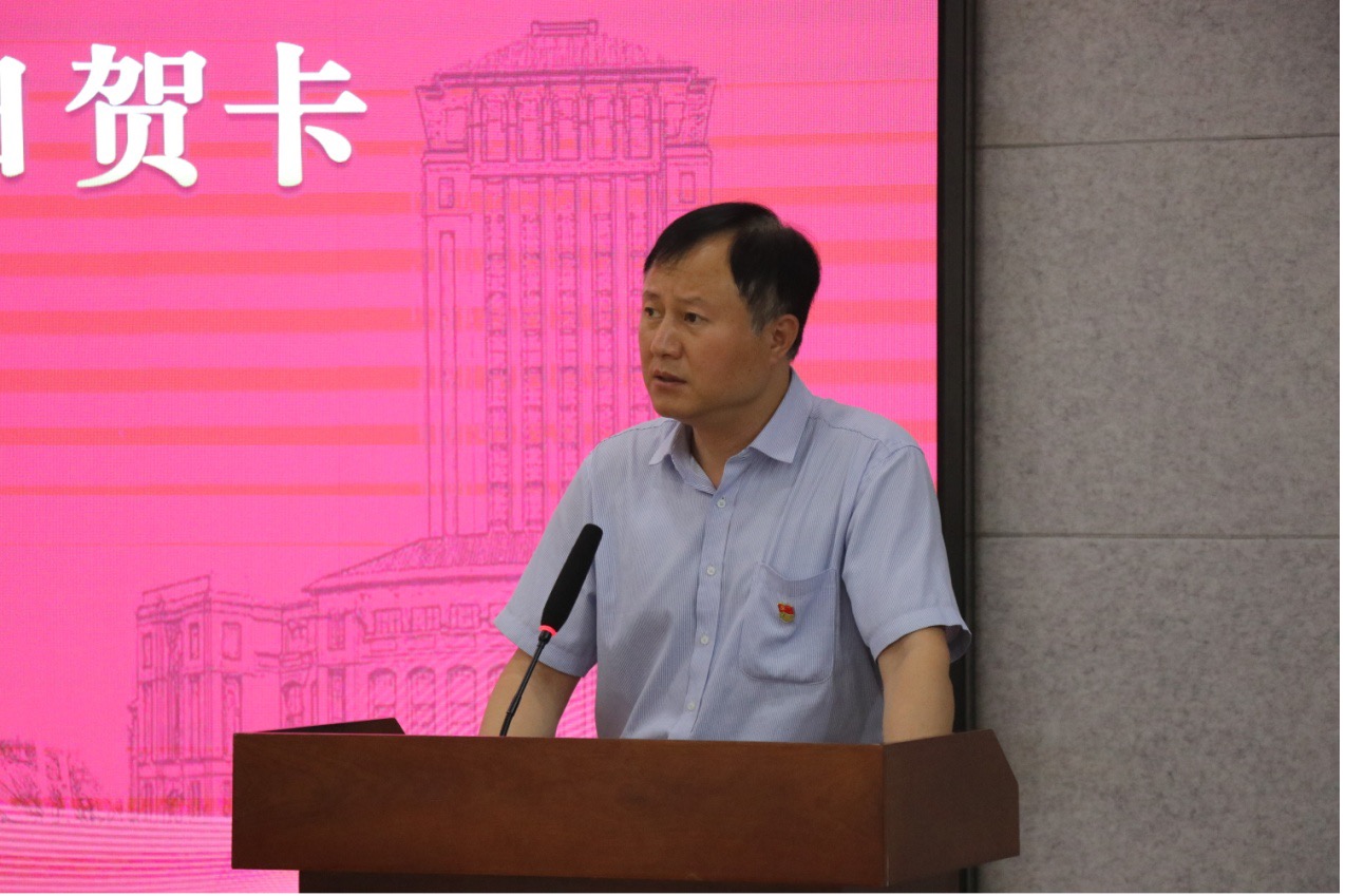会上,武佐君和董晓强还向党员代表颁发了政治生日贺卡。随后,在武佐君的带领下,重温入党誓词,全体与会党员面对党旗,庄严宣誓。各教工党支部书记还分别作了主题教育的成果汇报。