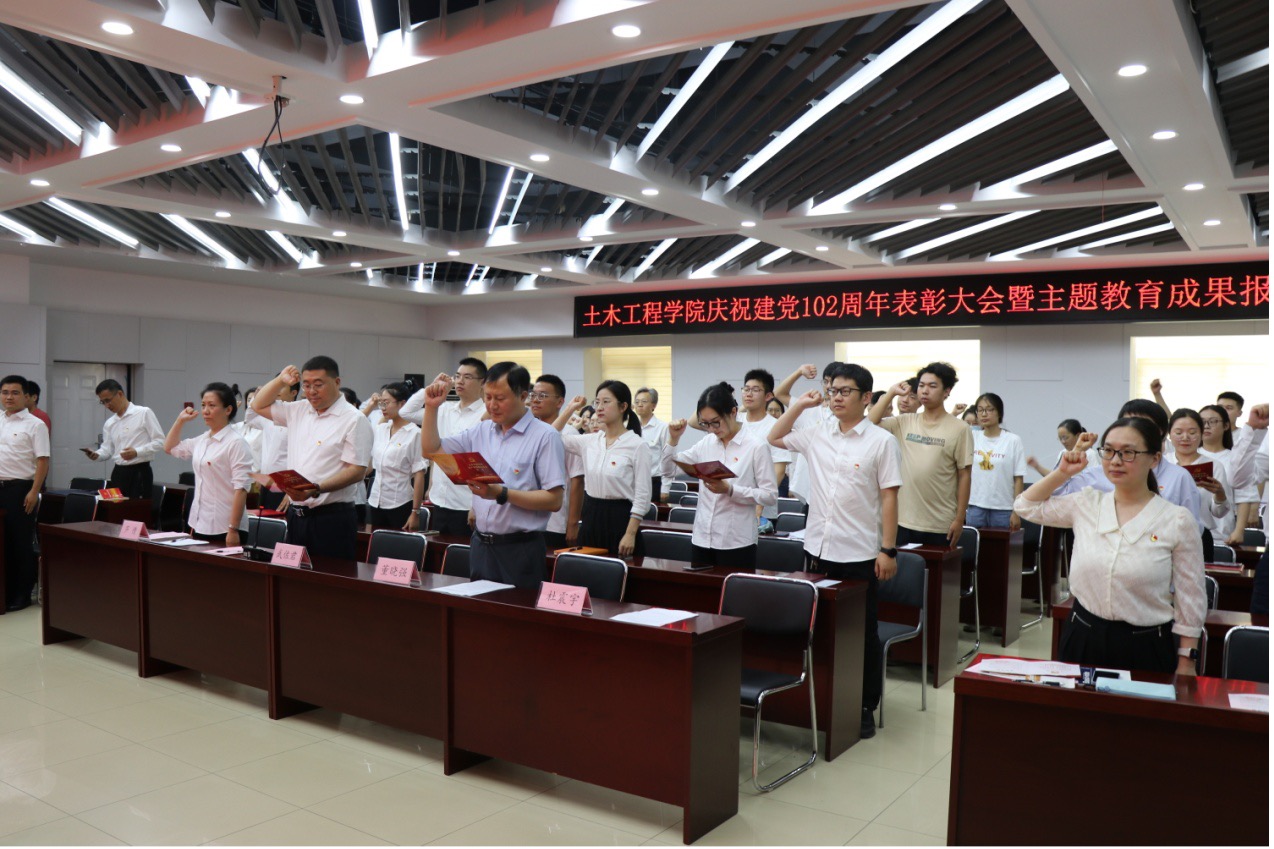 为扎实开展学习贯彻习近平新时代中国特色社会主义思想主题教育,进一步弘扬正气、树立典型,激励全院广大党员,以先进集体和优秀个人为榜样,在学院建设和发展中作出新贡献、展现新作为,6月30日上午,学院在五层会议室召开庆祝建党102周年表彰大会暨主题教育成果报告会。表彰大会由院党委副书记芦倩主持,院领导班子出席,系部中心主任、三办一委负责人、工会主席、党支部书记、受表彰人员及党员代表等百余人参加。
