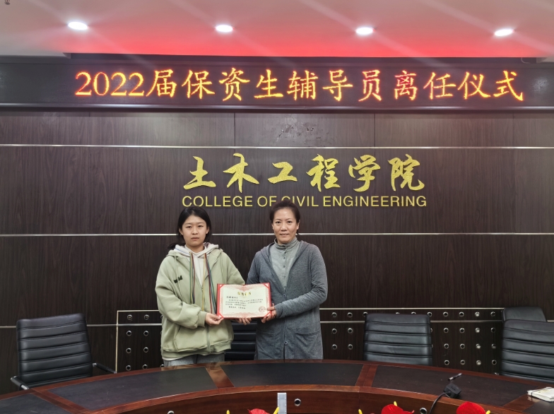 随后,芦倩为离任保资生颁发荣誉证书,与会师生合影留念。