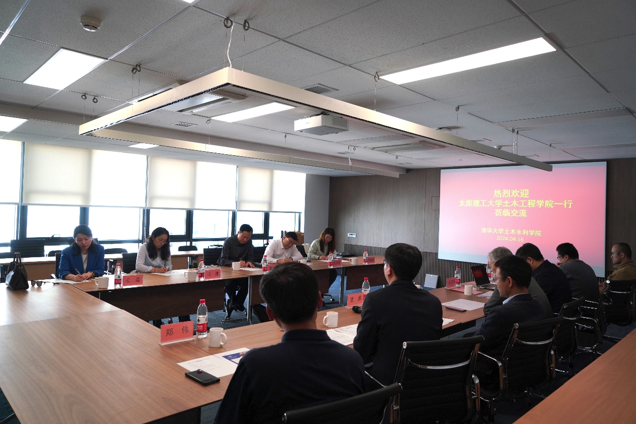 2024年4月16日下午,学院党委书记武佐君、院长董晓强、党委委员王婕、基础部主任王蕊和土木第五研究生党支部书记刘晓玲前往清华大学土木水利学院,开展工作交流研讨并进行青年人才招聘宣讲。清华大学土木水利学院院长方东平教授、党委书记傅旭东教授、副院长李克非教授、党委副书记潘鹏教授、防灾所党支部书记纪晓东副教授、党委委员李威副教授、院长助理郑伟出席交流会,并由潘鹏教授主持。