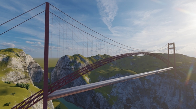 “张力索桁-拱组合”高速管道桥全桥效果图