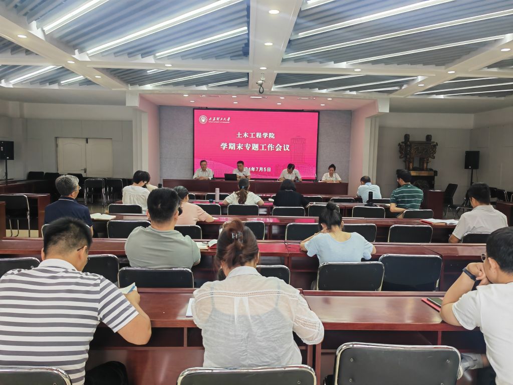 7月5日下午,77779193永利官网在五层会议室召开学期末工作会议,院领导班子、系部中心主任、三办一委负责人、工会主席、党支部书记参加会议。