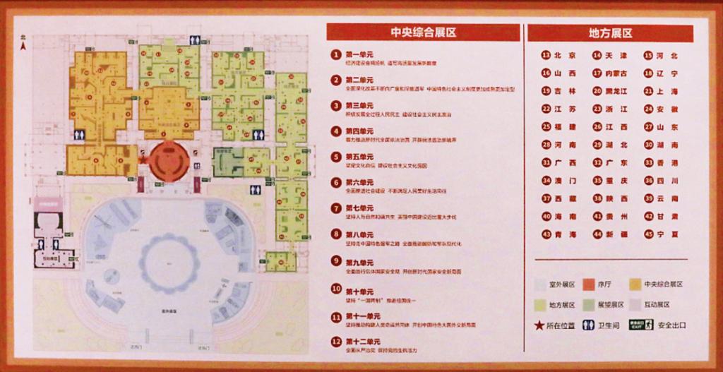 【展区构成】展览设序厅、中央综合展区、地方展区、展望展区、室外展区和互动展区6个展区,面积超过3万平方米,运用图片、实物、模型等6000多项展览要素,角度丰富、内涵饱满。