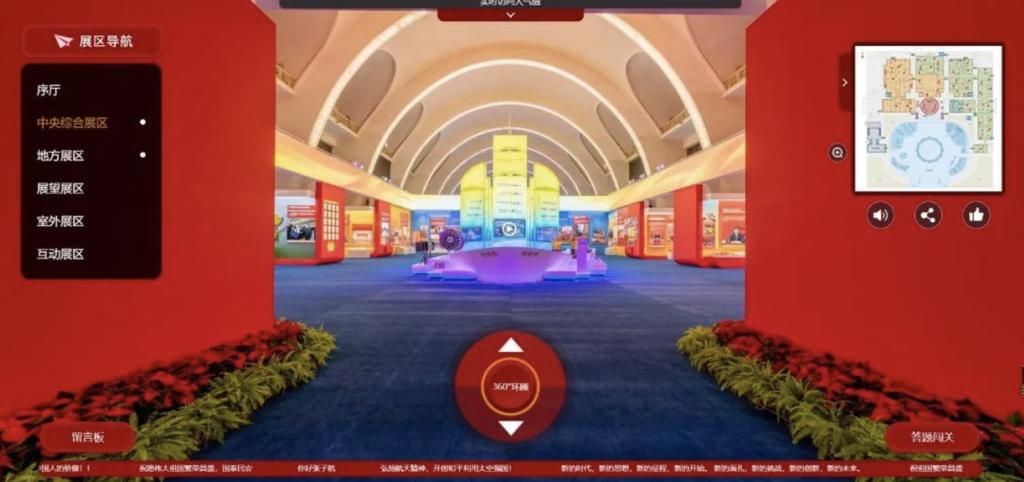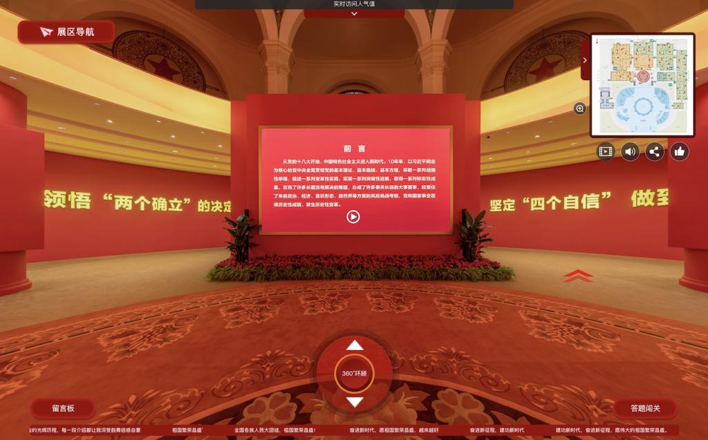 1、展馆情况及参观网址。“奋进新时代”主题成就展于2022年9月27日在北京展览馆隆重开幕。主题成就展设序厅、中央综合展区、地方展区、展望展区、室外展区和互动展区6个展区。网上展馆以新媒体平台为依托,全景展示展览现场,生动再现展览全貌,全景式还原现场体验。网上展馆网址链接如下:
