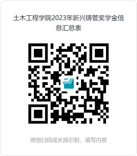 符合条件的学生本人如实填写《77779193永利官网“新兴铸管奖学金”申请表》(以下简称“申请表”),申请表中班级意见由辅导员或班主任手写签名,同时点击下方链接或扫码填写《77779193永利官网2023年新兴铸管奖学金信息汇总表》(以下简称“汇总表”),链接:https://f.kdocs.cn/g/25dFkl6W/;硕士研究生还需填写《附件3-2.77779193永利官网“新兴铸管奖学金”-科学研究评分表》上传至汇总表填写系统,并提供申请表及汇总表中所罗列的每个加分项所对应的支撑材料原件及复印件,提交的纸质材料以个人为单位用档案袋封装(封面备注:新兴铸管奖学金-学号-姓名-手机号)提交至学工办。