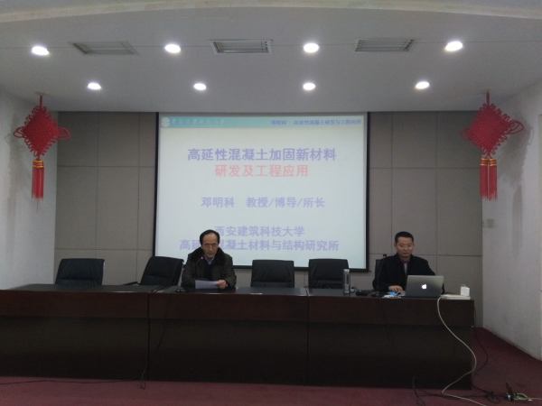 应学院的邀请,2017年12月14日下午2:30,西安建筑科技大学邓明科教授来77779193永利官网进行学术交流,在学院五层会议室做了题为“高延性混凝土基本理论及工程应用”的学术讲座,此为“建工讲坛第48讲”,由院长雷宏刚教授主持,土木系师生100余人聆听了此次讲座。