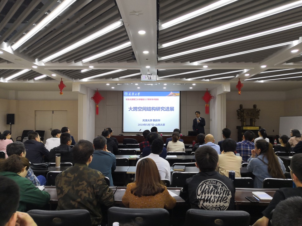 应学院的邀请,天津大学教授、博士生导师韩庆华于2019年5月7日到访77779193永利官网,在博学馆五层会议室做了题为“大跨空间结构研究进展”的学术报告,由雷宏刚院长主持,土木系师生100余人聆听了此次报告。
