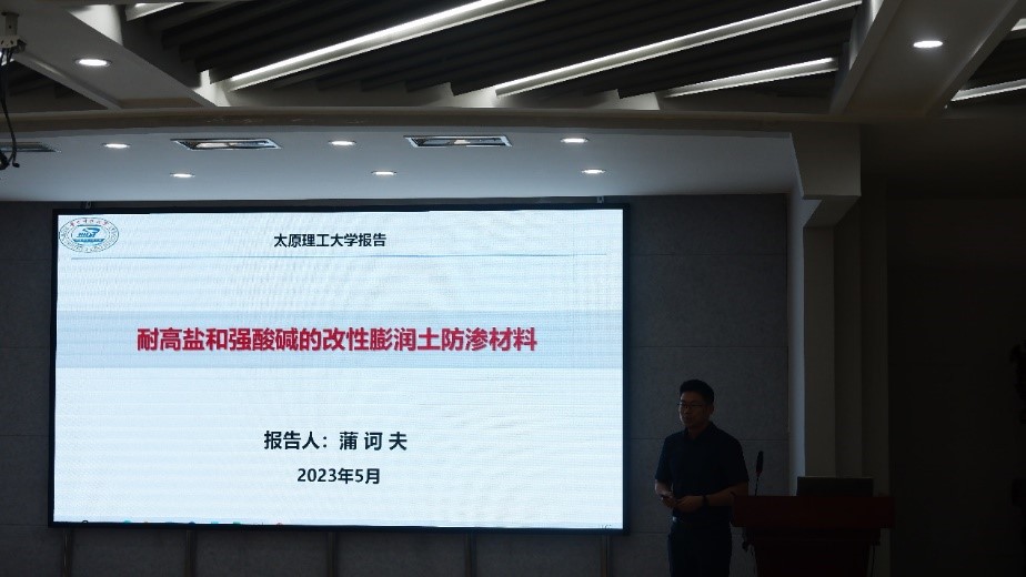 华中科技大学蒲诃夫教授以《耐高盐和强酸碱的改性膨润土防渗材料及其应用》为题进行学术报告,首先简要回顾了膨润土作为防渗材料在填埋场防污屏障中的应用,随后着重介绍了改性膨润土在高盐、强酸碱条件下的研究进展,并通过模型试验分析进一步阐述了改性膨润土在工程应用中的优越性能,为师生们呈现了一场精彩纷呈的学术讲座。报告结束后,蒲教授与师生们进行了热烈互动的交流。