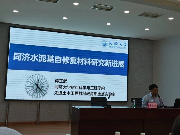 同济大学蒋正武教授以《同济水泥基自修复材料研究新进展》为题进行学术报告,聚焦水泥基材料的自修复是创新性思路、可衍生新技术与方法,包括微胶囊、矿物、自溶型矿物水泥基和超高性能水泥基自修复方法,未来向力学性能恢复、生物仿生与智能化、环境相容与长期耐久性等方向发展。整场报告精彩生动,在场师生表示受益匪浅。