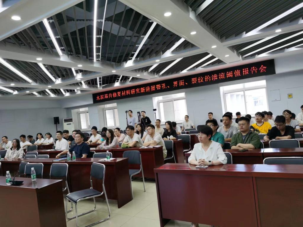 东南大学陈惠苏教授以《孔、界面、裂纹的渗流阈值》为题,从理论分析、实验研究和数值模型三个方面概述了当前混凝土材料渗流的研究现状,重点围绕纳微孔隙中流体流动界面作用与细观力学特性关系及表征、细观−宏观网络仿真模拟、细观尺度流体流动细观动力学机制及数学模型等关键问题展开论述。报告精彩深刻,对在场师生们的科研思维产生了重要的引领作用。