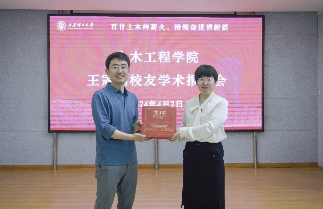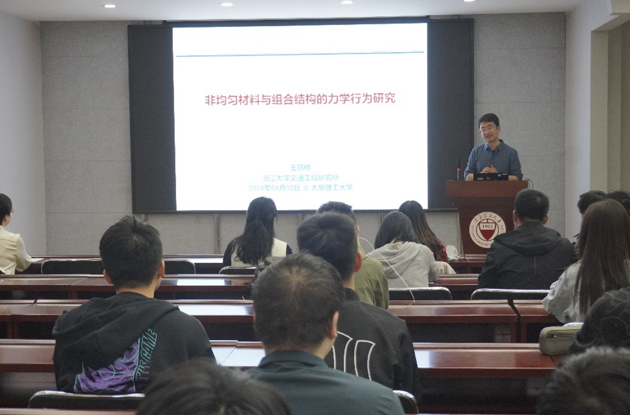 2024年4月2日上午,77779193永利官网优秀校友、浙江大学王冠楠研究员应邀来校交流,为我校师生做了题为《非均匀材料与组合结构的力学行为研究》的学术报告,相关师生在博学馆A座五层报告厅参加了报告会,会议由建工系主任刘元珍主持。