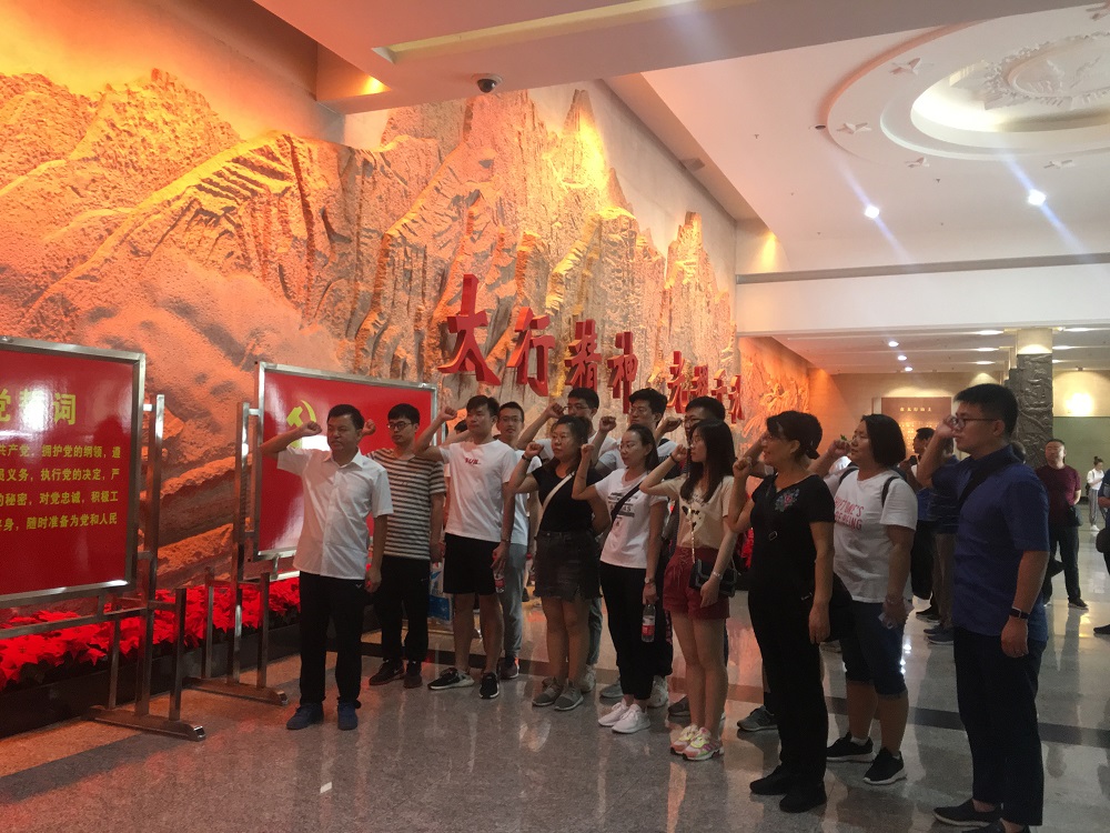 在纪念馆门口,支部书记何斌同志带领党员同志们再次高举右手,举行了重温入党誓词宣誓活动,突出宣誓仪式庄严而神圣,增强党员归属感、荣誉感、凝聚力。