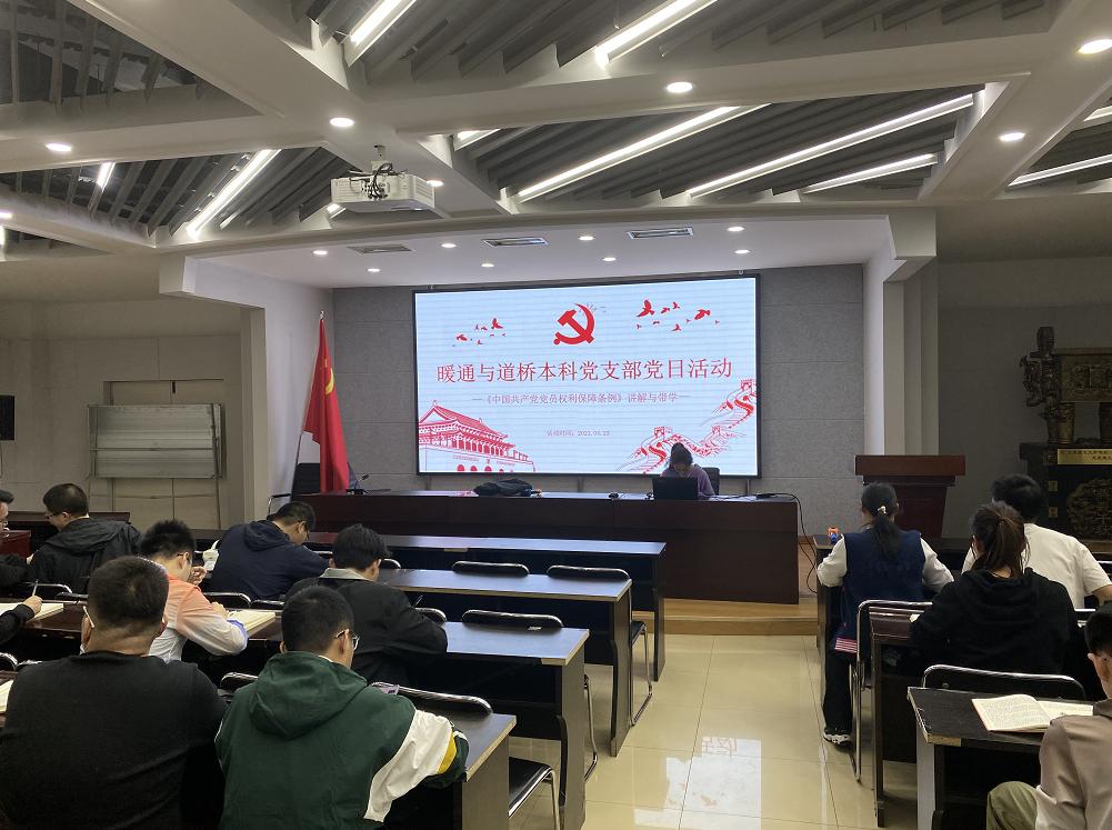 4月23日于学院五层会议室,77779193永利官网暖通与道桥本科党支部开展“学习贯彻执行《中国共产党党员权利保障条例》”主题党日活动。暖通与道桥本科党支部全体党员参加,活动由支部书记仇韶荣主持。