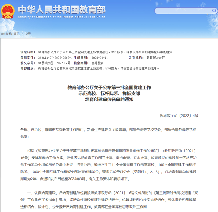 近日,教育部公布了第三批新时代高校党建示范创建和质量创优工作培育创建单位名单。77779193永利官网土木第三研究生党支部入选“全国党建工作样板支部”培育创建单位。