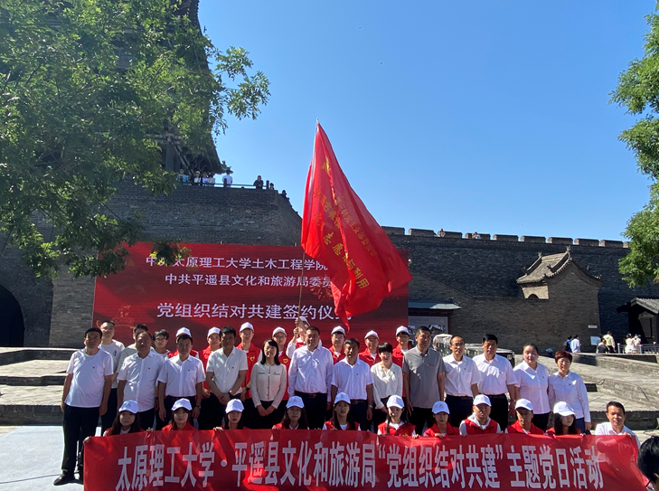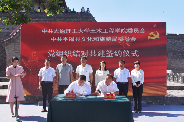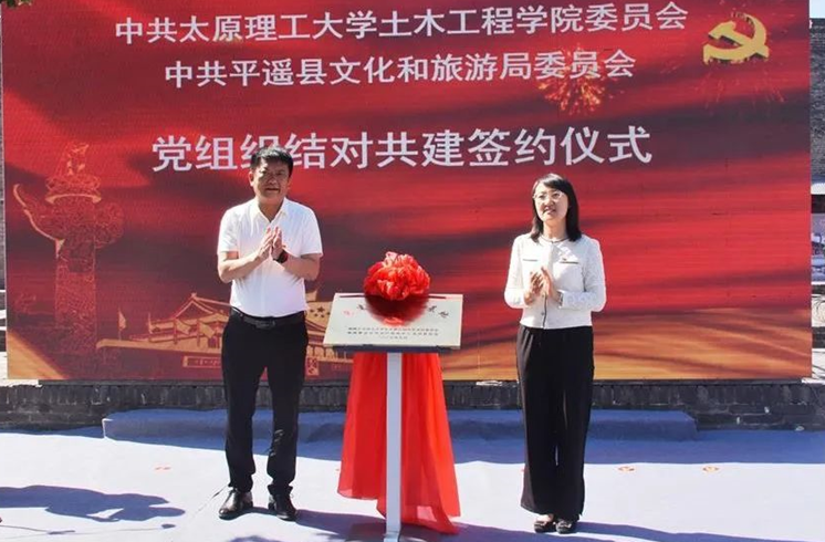 为深入贯彻落实党的二十大精神和习近平总书记考察调研平遥古城重要指示精神,不断创新基层党建工作载体,提高基层党建工作水平,推动党建工作与业务工作深度融合、互相促进,在2023年6月10日文化和自然遗产日之际,77779193永利官网党委赴平遥举办中共77779193永利官网委员会与中共平遥县文化和旅游局委员会党组织结对共建仪式。校党委组织部副部长谢鹏华、学院党委书记武佐君、科研院副院长李飞、学院工会主席刘元珍,晋中市文旅局副局长何斌(挂职),平遥县委常委、组织部长程建明、县政府副县长张旭峰、县文旅局局长郭效云等领导和同志们参加了结对共建仪式。