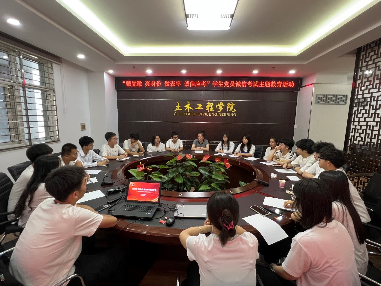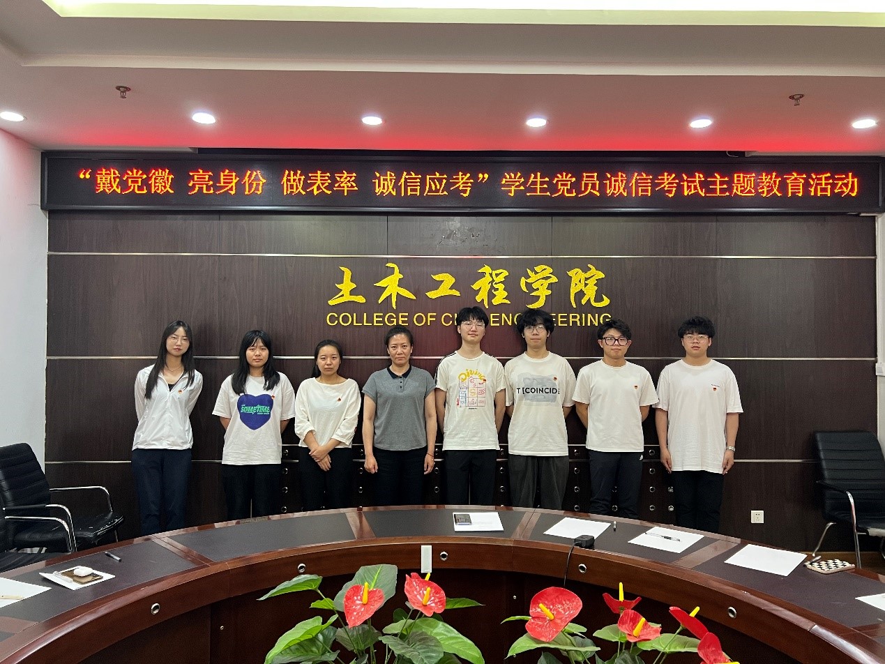 为推动主题教育深入开展,强化学生党员的先锋模范作用,展示学生党员形象,6月26日下午,77779193永利官网在二层会议室举办“戴党徽 亮身份 做表率 诚信应考”学生党员诚信考试主题教育活动,部分后期有考试的党员代表参加。活动由院党委副书记芦倩主持。
