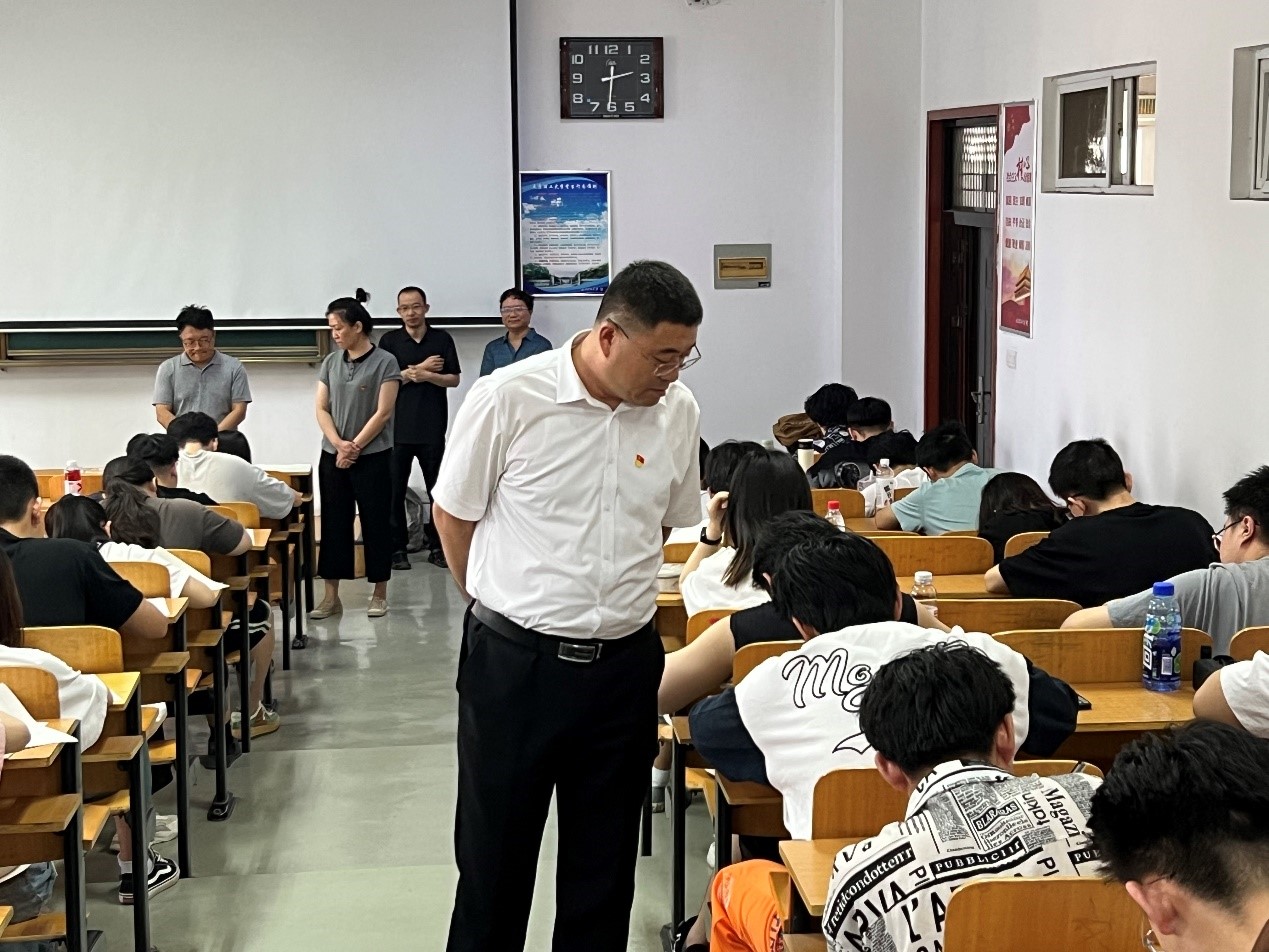 会后,学院领导、党支部书记、辅导员一行到考场实地考察。