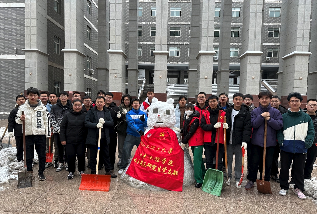 大雪刚过,各学生支部党员、发展对象、积极分子不畏严寒,团结协作,有序清理着道路上的积雪。冷风掠过夹微霜,大家齐心协力,配合默契,铁锹扫帚声汇成了一曲火热的交响乐,奔波忙碌的身影构成了一副生动的画面,在冬日里传递着一份安心与温暖。在此过程中,同学们充分发扬了“奉献、友爱、互助、进步”的志愿服务精神,彰显了共产党员乐于奉献、永葆先进的精神面貌,在共同努力下,学院周边实验室、主要通行道路的积雪全部清理干净,师生出行安全得到了切实保障。堆积的雪人披着火红的志愿者服,可爱而又坚韧,来往师生纷纷驻足合影“打卡”。