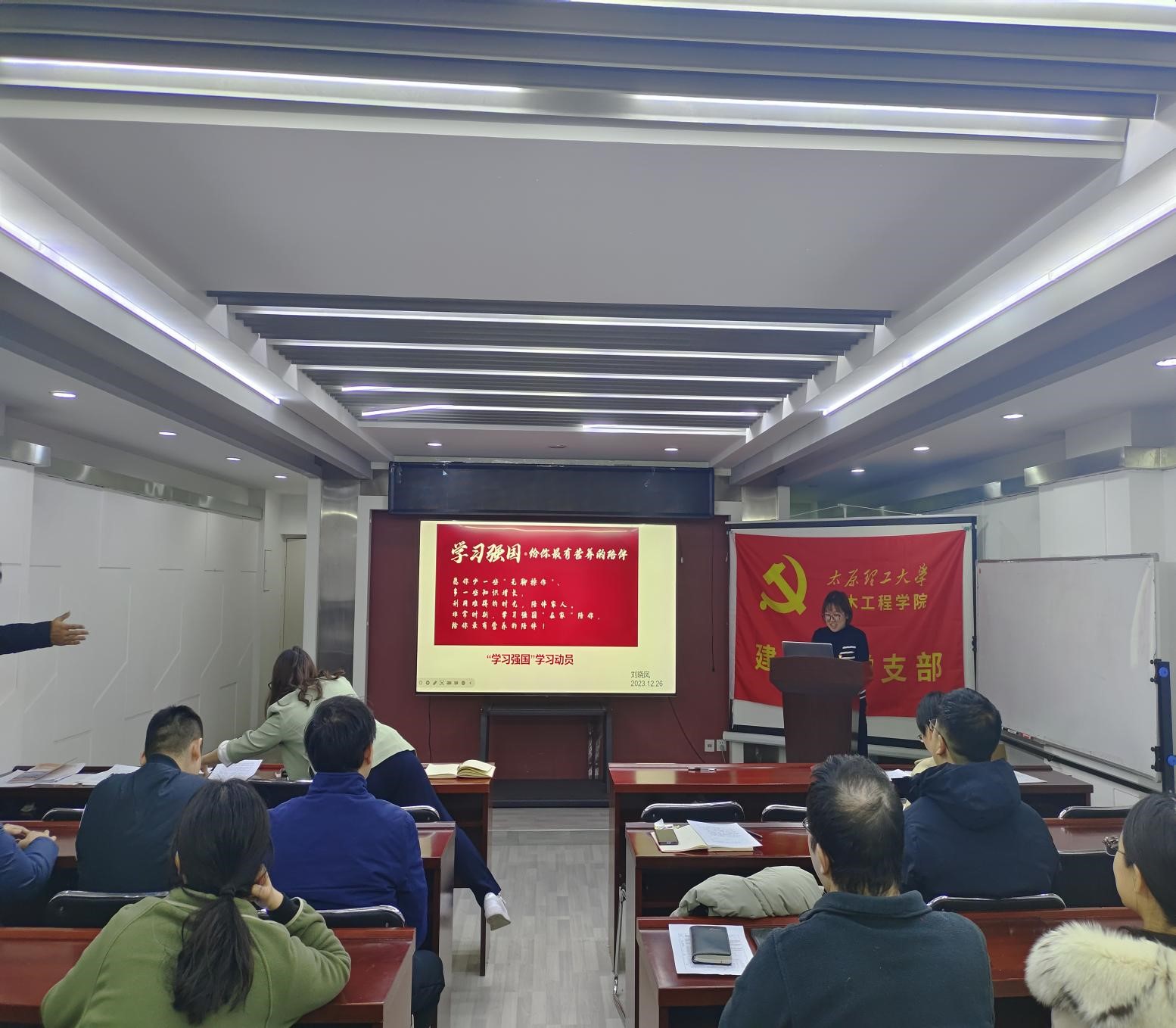 随后,建工系党支部宣传委员刘晓凤进行了学习强国的学习动员。刘晓凤从学习的意义,支部学习状况,以及学习的心得等方面动员支部的党员同志们要利用好学习强国平台,提高自身思想觉悟、文明素质、科学素养。