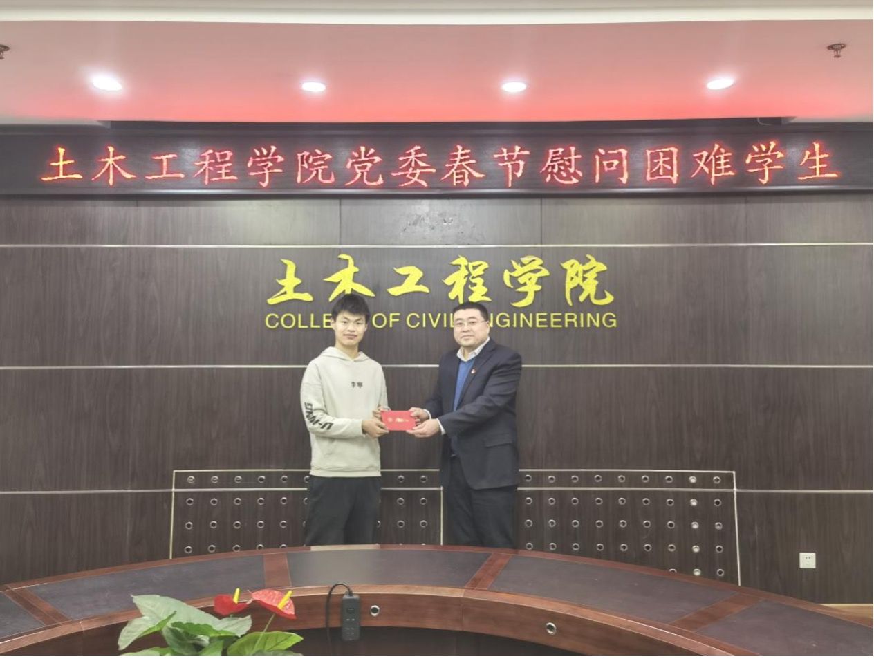 随后,院党委慰问了困难学生任俊有,详细询问了学生的学习生活和家庭情况,细致解答了学生提出的问题,对任俊有同学迎难而上、坚强执着、坚持学业、永不放弃的精神品质进行了表扬,希望他在学校和学院坚强有力的帮助支持下,常怀感恩、砥砺前行,自强自立、坚定信心、成长成才。